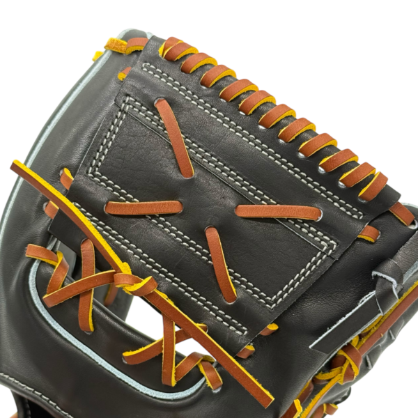 捕球面を広く使えるよう、アゴのレースは逆巻き仕様。
