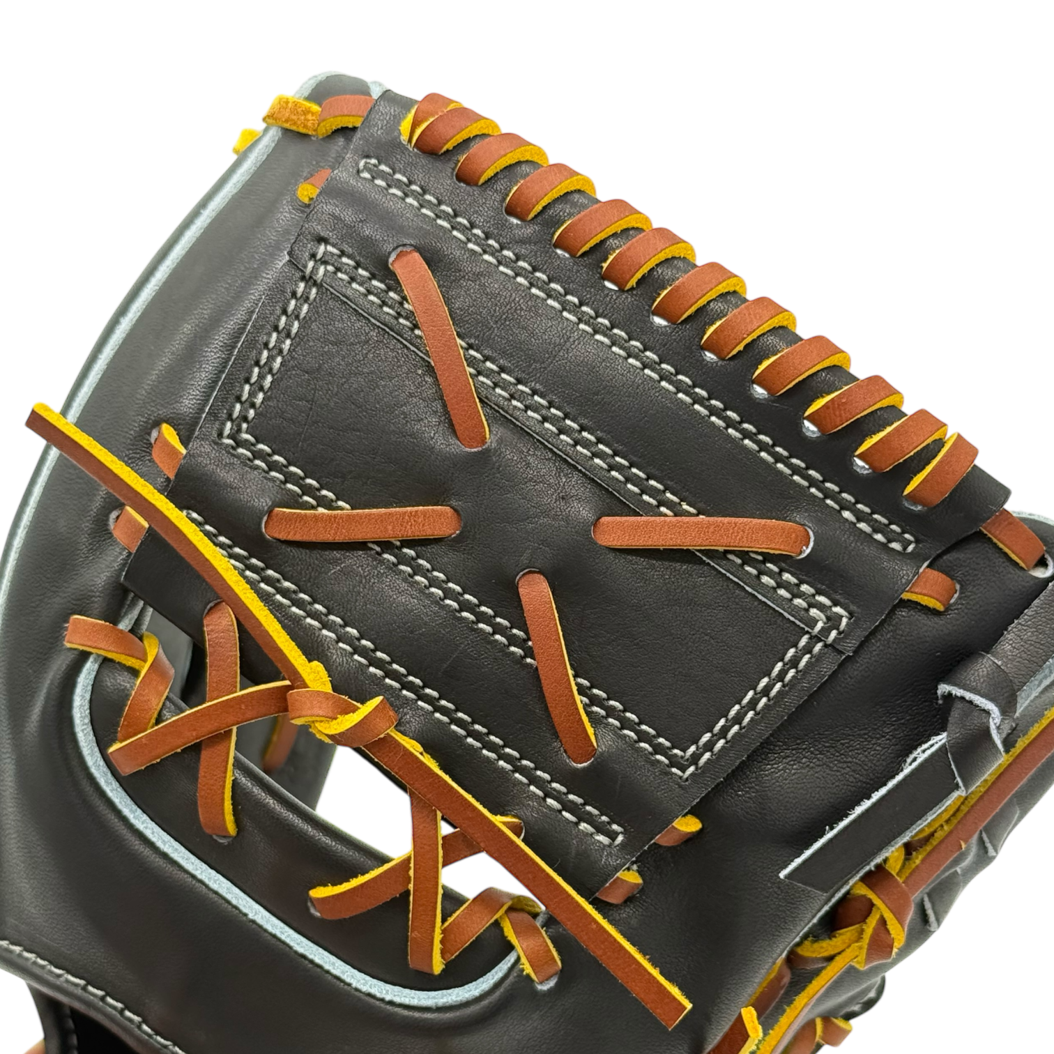 受球面・裏平パーツの革を薄く漉かず革本来の持つ耐久性を活かし、当て革を最小限にする事で素手感覚の捕球感