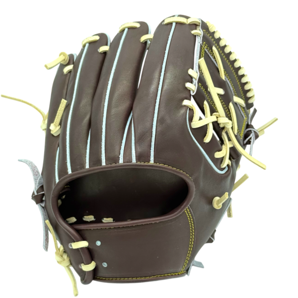 受球面・裏平パーツの革を薄く漉かず革本来の持つ耐久性を活かし、当て革を最小限にする事で素手感覚の捕球感