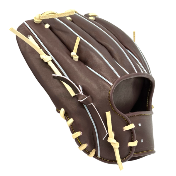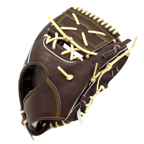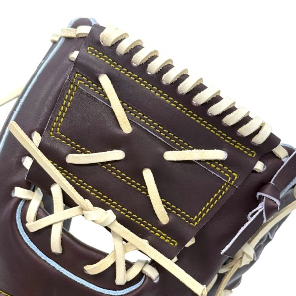 捕球面を広く使えるよう、アゴのレースは逆巻き仕様。